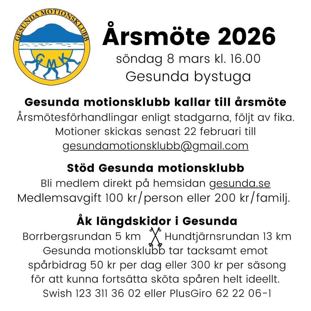 Välkommen till årsmöte i Gesunda motionsklubb!